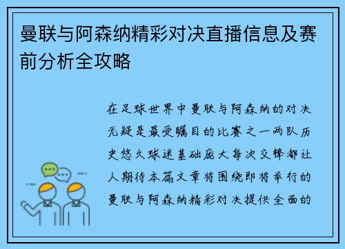 曼联与阿森纳精彩对决直播信息及赛前分析全攻略
